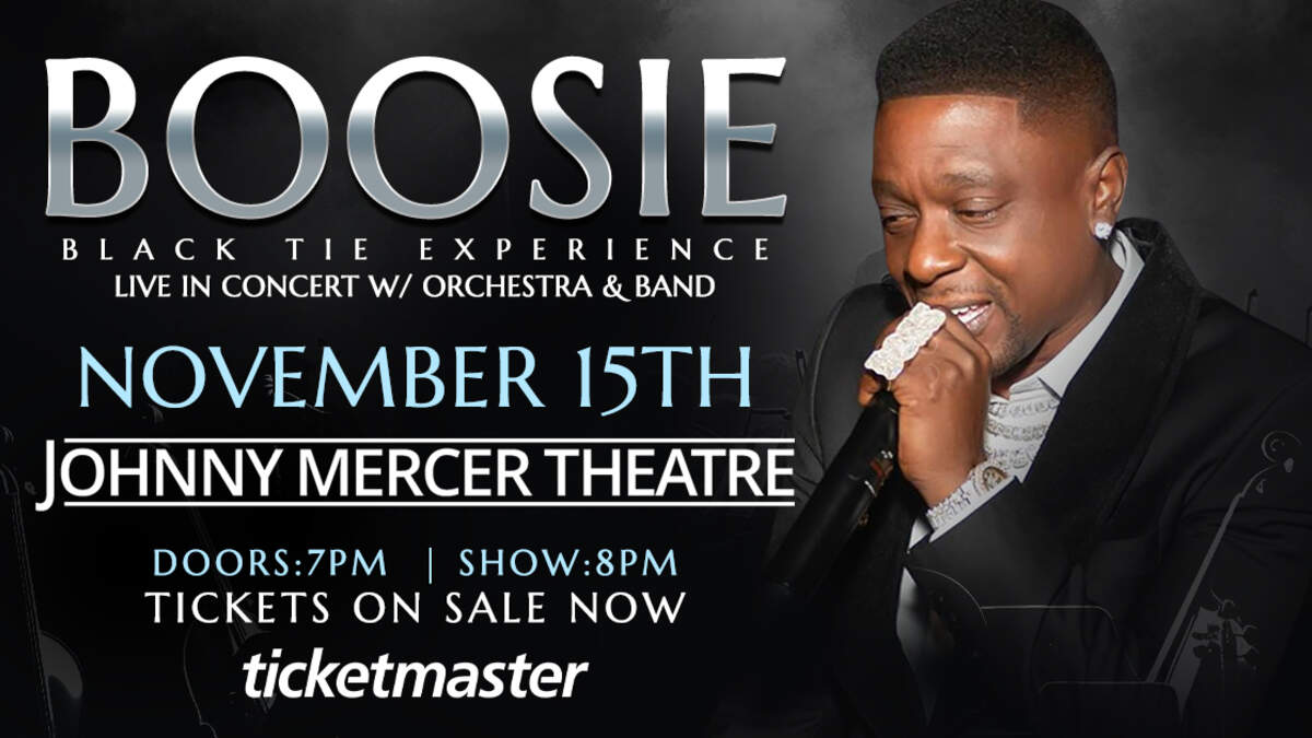 Yungfly Entertainment PRESENTS The Boosie Black Tie Experience! Live in concert with orchestra & band! Taking place at the Johnny Mercer Theatre🔥 Tickets on sale now at Ticketmaster!